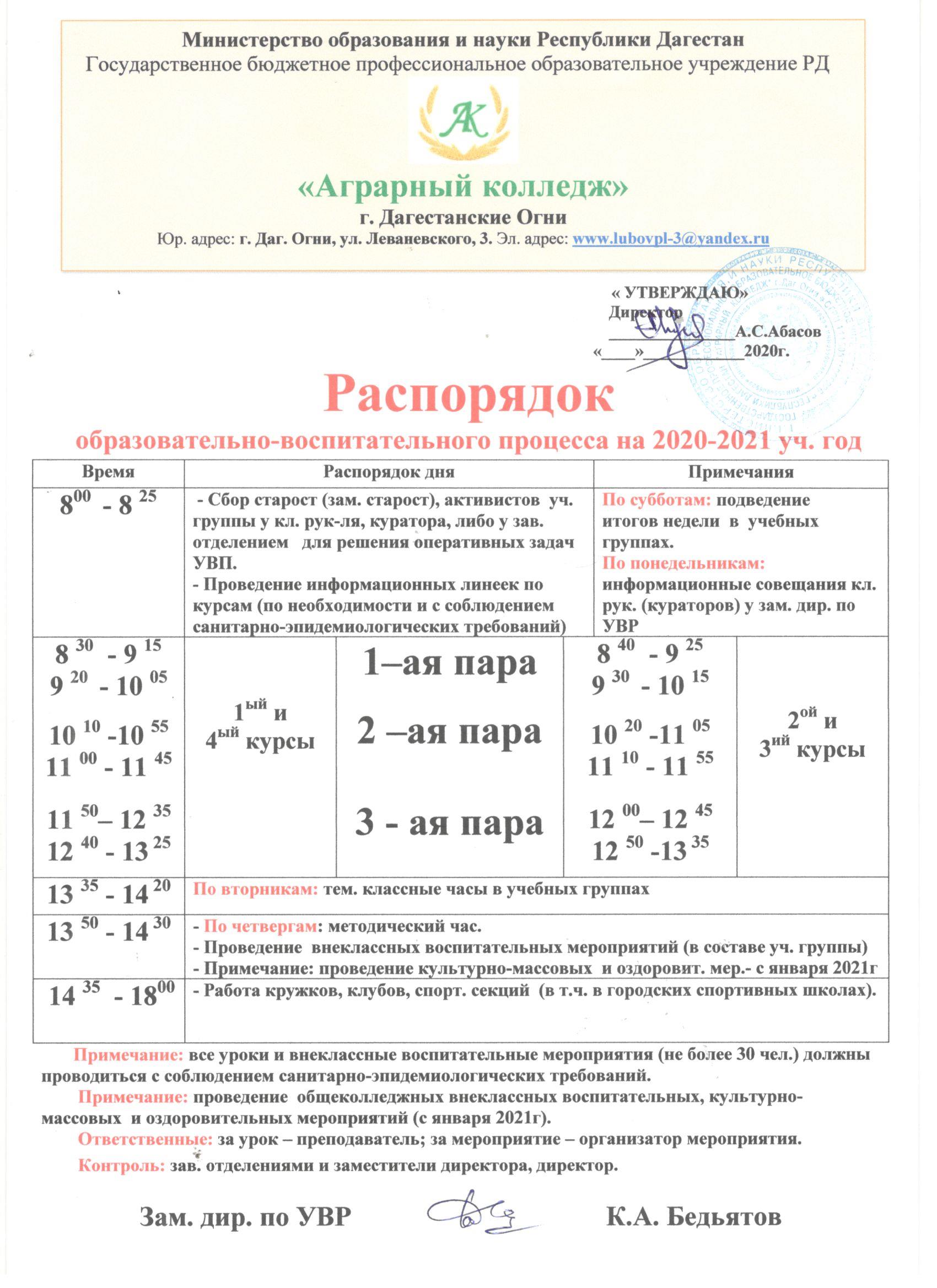 График дежурств преподавателей в отделении п. Белиджи (смотреть)