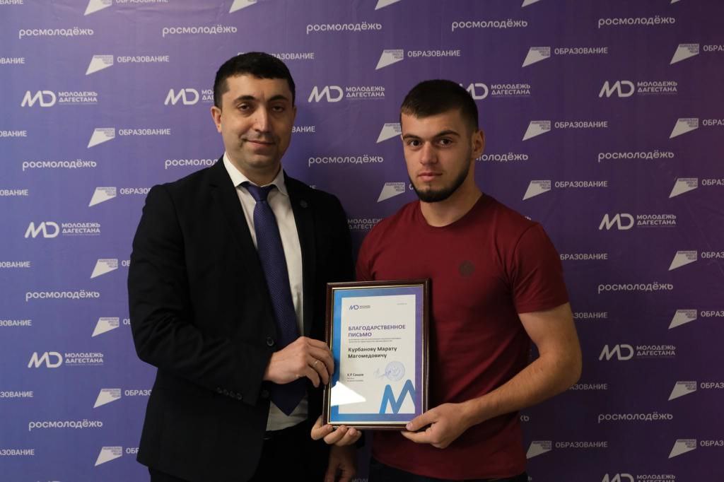 Ко Дню российского студенчества Министерство молодежи РД 25 января в "Республиканском молодёжном центре" провело награждение отличившихся студентов ВУЗ-ов и ССУЗ-ов. Отрадный факт в том,что среди награждённых был и наш студент Курбанов Марат. Желаем ему дальнейших успехов!!!