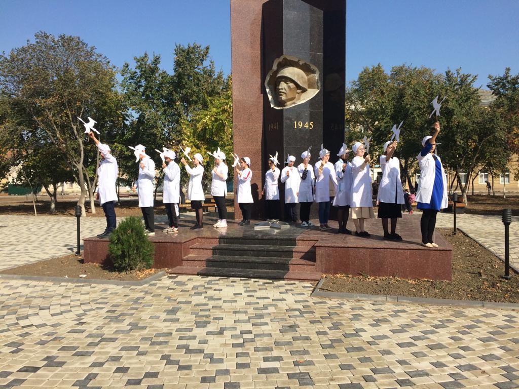 Молодежный центр колледжа в этот же день со студентами из групп по профессии «Младшая медсестра» провели флешмоб, посвященный джигитам Дагестана, героически погибших в боях под Сталинградом.