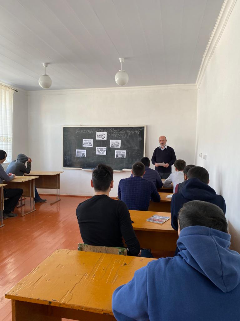 Кл. час в группе № 6 (куратор Абасов Р.) с. Ахты на тему: «Вся Россия, весь Дагестан и мы против терроризма и экстремизма».