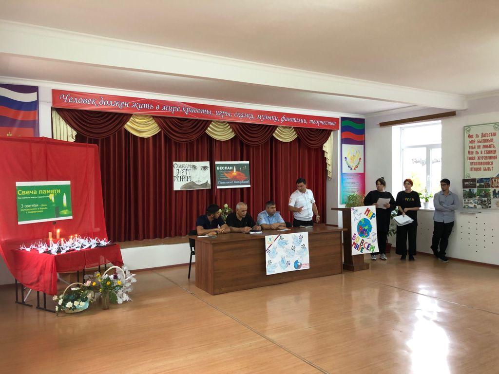 Ведущие мероприятия – активисты МЦ «Данко» и молодые педагоги - напомнили всем присутствующим о всех террактах за последние годы, особенно подробно остановились на трагических событиях в Беслане. (3 сентября 2004г.)