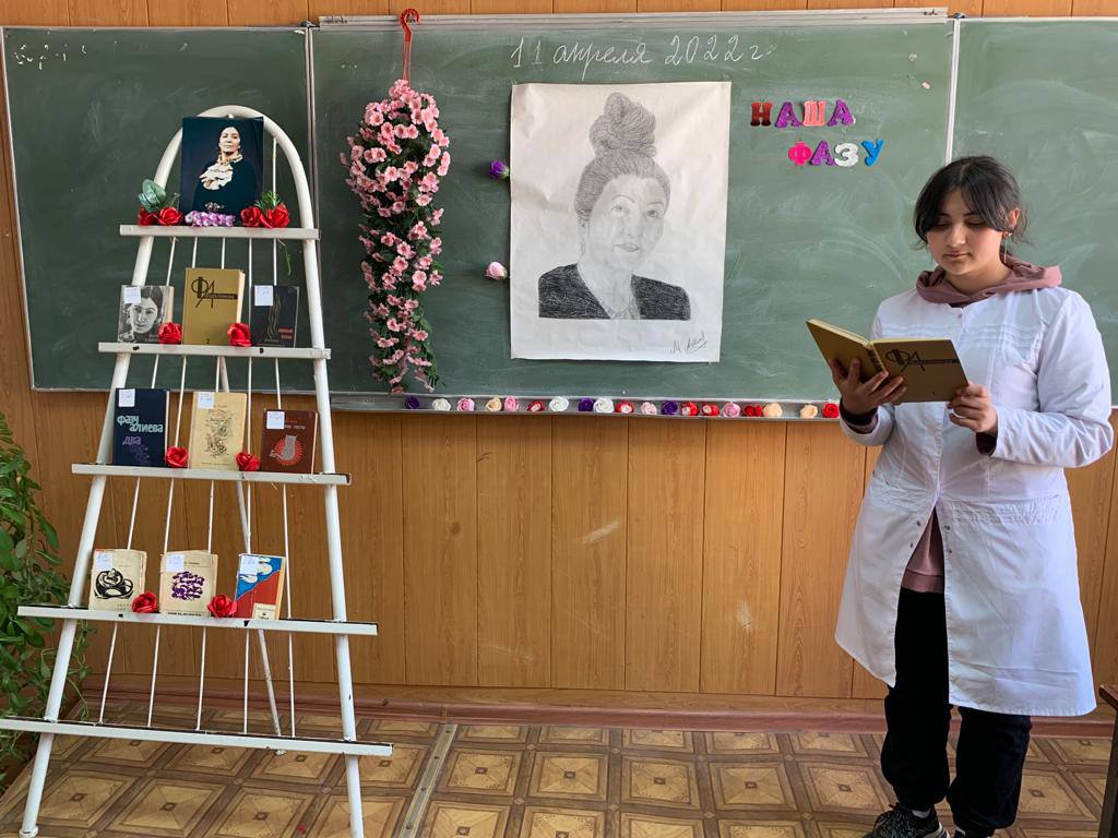Кл. руководитель – Шалбузова С.Г. во вступительном слове рассказала о гражданине, матери, женщине – поэтессе Дагестана Фазу Алиевой, которая в 35 лет стала народной поэтессой Дагестана.