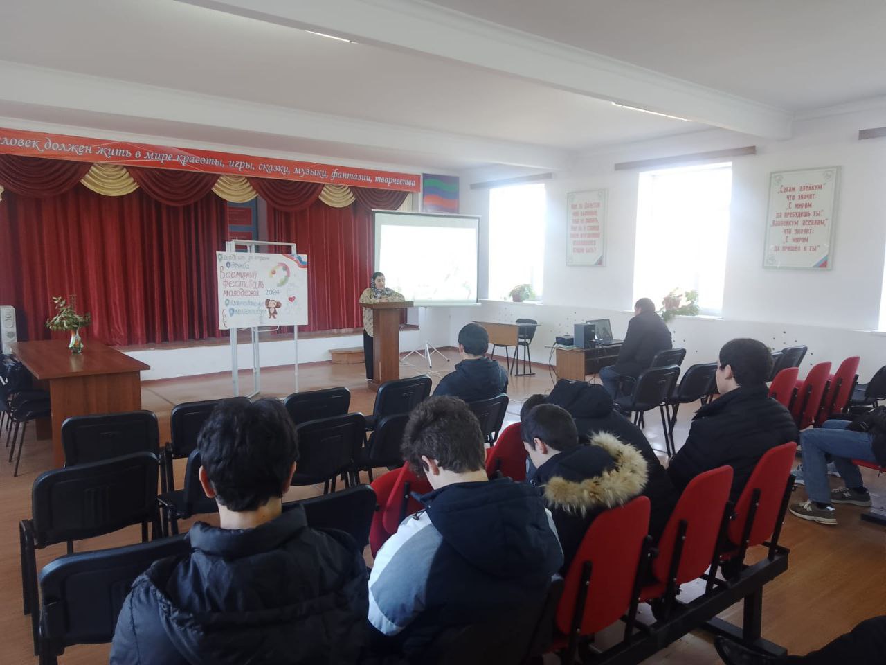 Гости поинтересовались успехами в образовательном процессе, условиями труда педагогов. Они призвали преподавателей в рамках образовательного и воспитательного процесса делать акцент на патриотическом воспитании, пропаганде ЗОЖ, чаще проводить спортивные соревнования, поощрять отличников физического воспитания. Они подчеркнули, что от работы педагогов зависит физическое, социальное и душевное благополучие будущих поколений россиян.