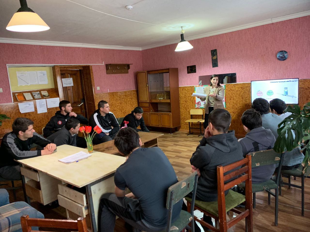 Сегодня 17.04.23 года,в общежитии Аграрного колледжа медсестра Шихалиева А.Т и воспитатель Дашдиев Г. М. провели беседу на тему: « Вакцинопрофилактика и ЗОЖ». Цель : формирование у учащихся позитивного отношения к вакцинации;