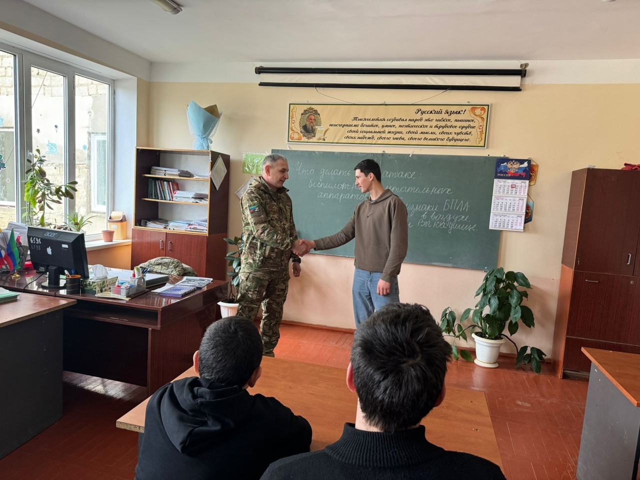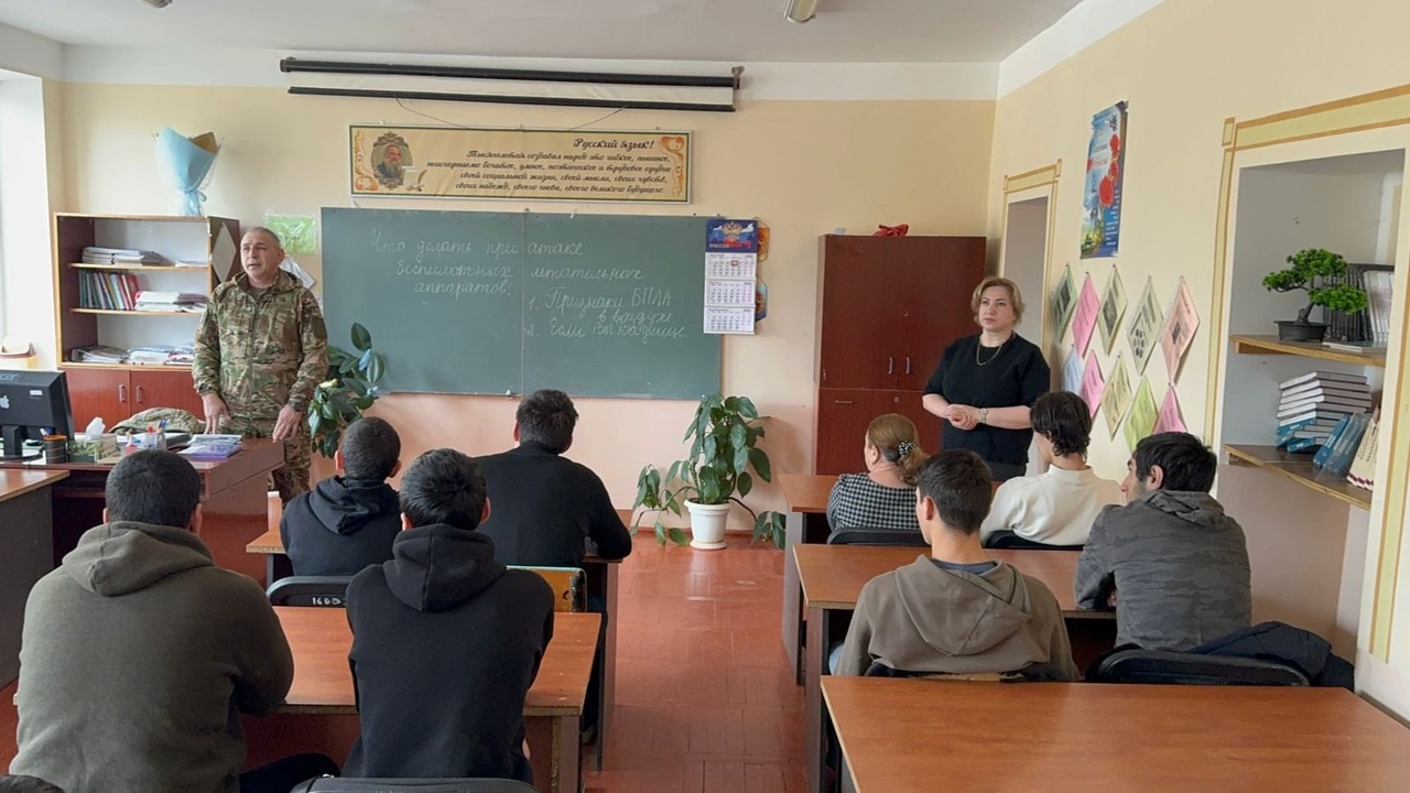 6 марта в отд. Белиджи в гр. 48, 63 проведена беседа на тему: « Что делать при атаке летательных аппаратов?» с приглашением участника СВО майора Алиева Н. М. ( зам. командира батальона по военно-политической работе).