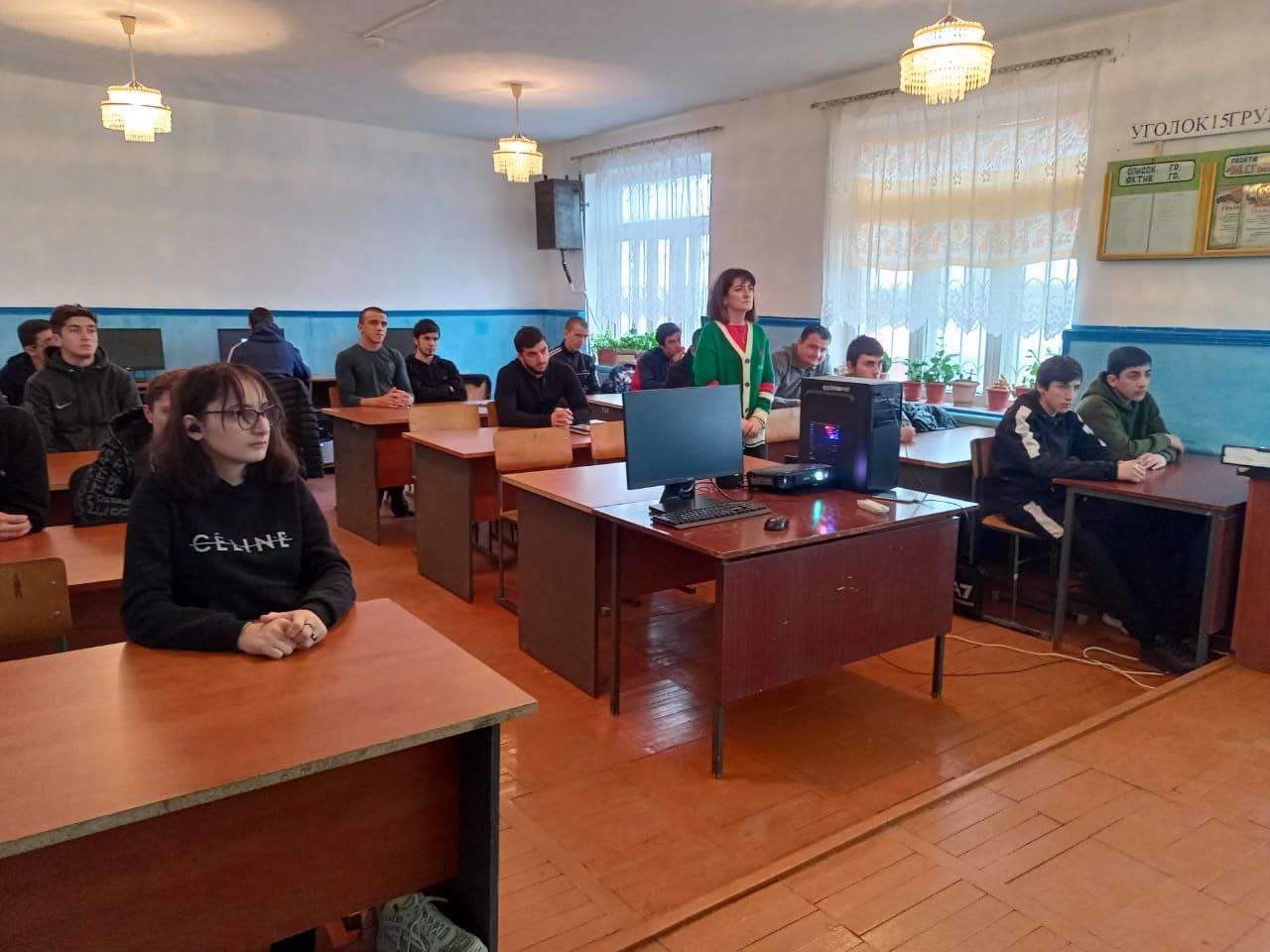 Сегодня 07.12.2022 г.в отделение пос.Белиджи, во всех уч.группах прошел Всероссийский Единый урок на тему: "Права человека". Целью урока является формирование правовой культуры молодых граждан нашей страны, продвижение идей всеобщей декларации прав человека и конституции РФ в общеобразрвательные организации, воспитание личности, которую отличает устойчивые нравственные качества, осознание достоинства человека. На уроке преподаватель рассказала о правах и обязанностях студентов, а также просмотрели видео ролик о противодействии коррупции во всех сферах. Урок провели преподаватели и кураторы: Уруджева С.Р., Абдулмеджидов А.М., Курбанов Д.М. |