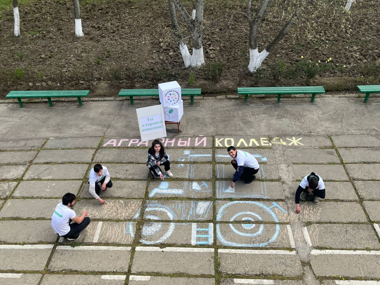 12 апреля в главном корпусе Аграрного колледжа в рамках популяризации ФП Профессионалитет было проведено мероприятие «Фестиваль рисунков на асфальте». В нем приняли участие студенты 32,33,24,23 группы. Мероприятие провели кураторы 32,33 групп: Султанова Г.С. и Казимова К.Г.
