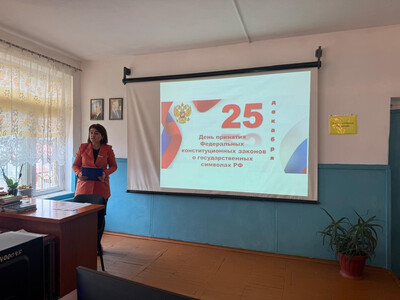 Сегодня, 25 декабря, советник директора по воспитанию ГБПОУ РД «Аграрный колледж» С.Р. Уруджева провела интересный и познавательный исторический урок на тему «Государственная символика России». В ходе мероприятия студенты сделали углубленный обзор символов нашего государства – флага, герба и гимна.