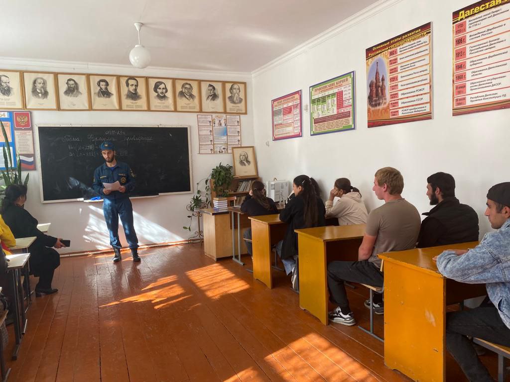 1 ноября, в отделении ГБПОУ РД "Аграрный колледж" в с. Ахты прошла профилактическая беседа сотрудников МЧС со студенческой молодежью. Перед собравшимися выступил командир подразделения Мамаев М. Д. Он рассказал об основных правилах пожарной безопасности, как оказывать первую помощь пострадавшим и как позвонить в экстренные службы с мобильного телефона.