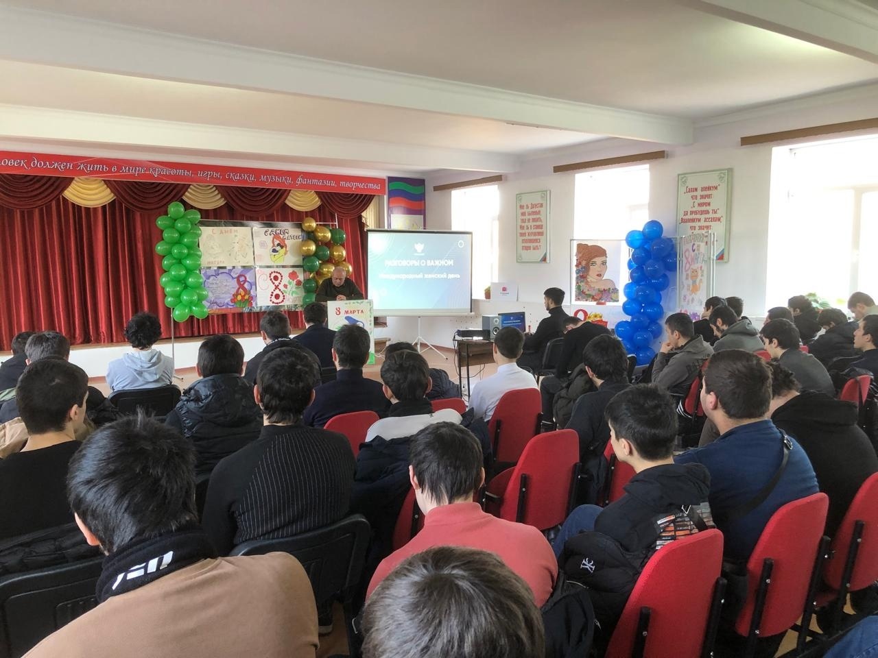 3 марта 2025 года в ГБПОУ РД "Аграрный колледж" и его отделениях прошла еженедельная торжественная линейка, которая началась с внесения Государственного флага РФ. Традиционно после линейки прошло занятие «Разговоры о важном», посвящённое теме «Международный женский день». Студенты обсудили закон «Об испытаниях лиц женского пола в знании курса высших учебных заведений и о порядке приобретения ими ученых степеней и звания учительницы средних учебных заведений», который 19 декабря 1911 года подписал император Николай II.