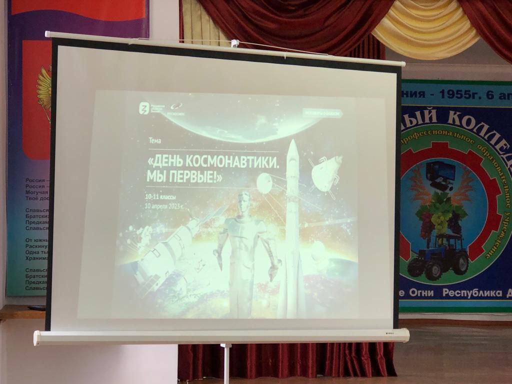 В Аграрном колледже 10 апреля 2023 года внеурочное занятие «Разговоры о важном» проходило по теме «День космонавтики. Мы первые!»