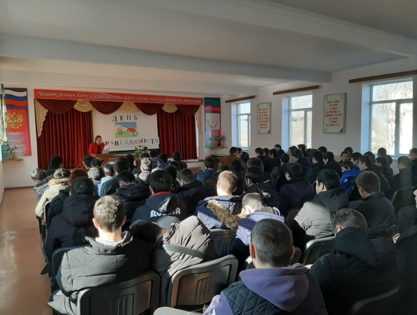 В преддверии Всемирного дня социальной справедливости в Актовом зале прошел лекторий на тему: «Цели, преследуемые Днем социальной справедливости», подготовленный и проведенный социальным педагогом Гусеналиевой Н.О.