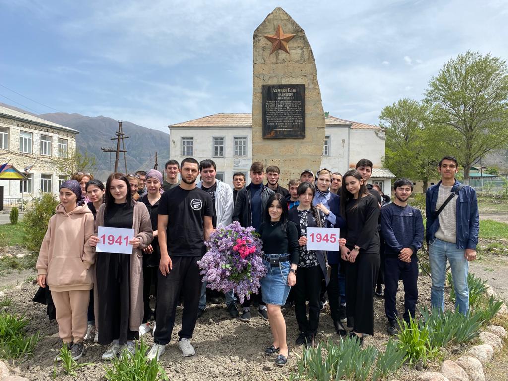 Так, активисты структурного подразделения Аграрного колледжа в с. Ахты 28 апреля посетили стелу, воздвигнутую в честь ахтынцев, погибшим в годы ВОв, и памятник Героя Советского Союза Валентина Эмирова.