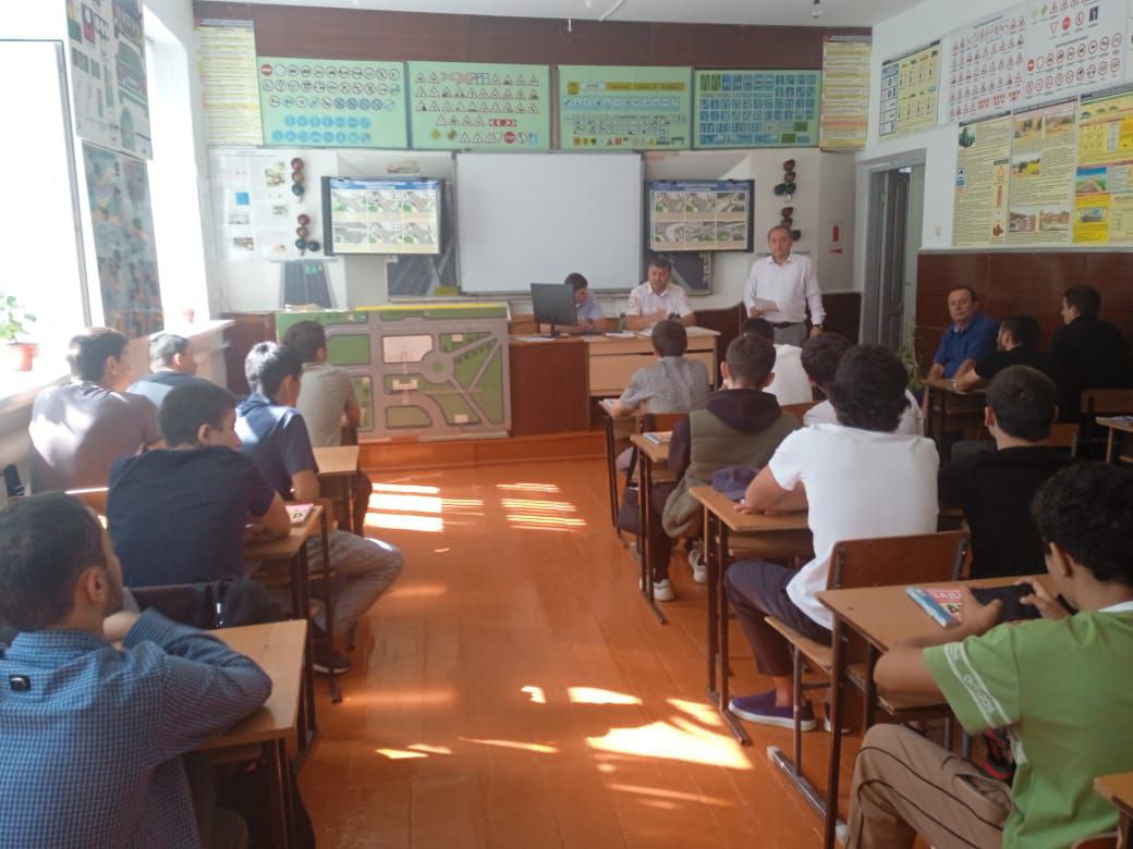 В рамках Всероссийской недели безопасности дорожного движения - 2024 кураторами групп Рамазановым А.М. Мурадовым М.Г. в группах №41 и №43 была организована встреча с сотрудниками ГАИ ОМВД РД по городу Дагестанские Огни лейтенантом полиции Мирзахановым Э.Р. и младшим лейтенантом Исмаиловым Д.М.