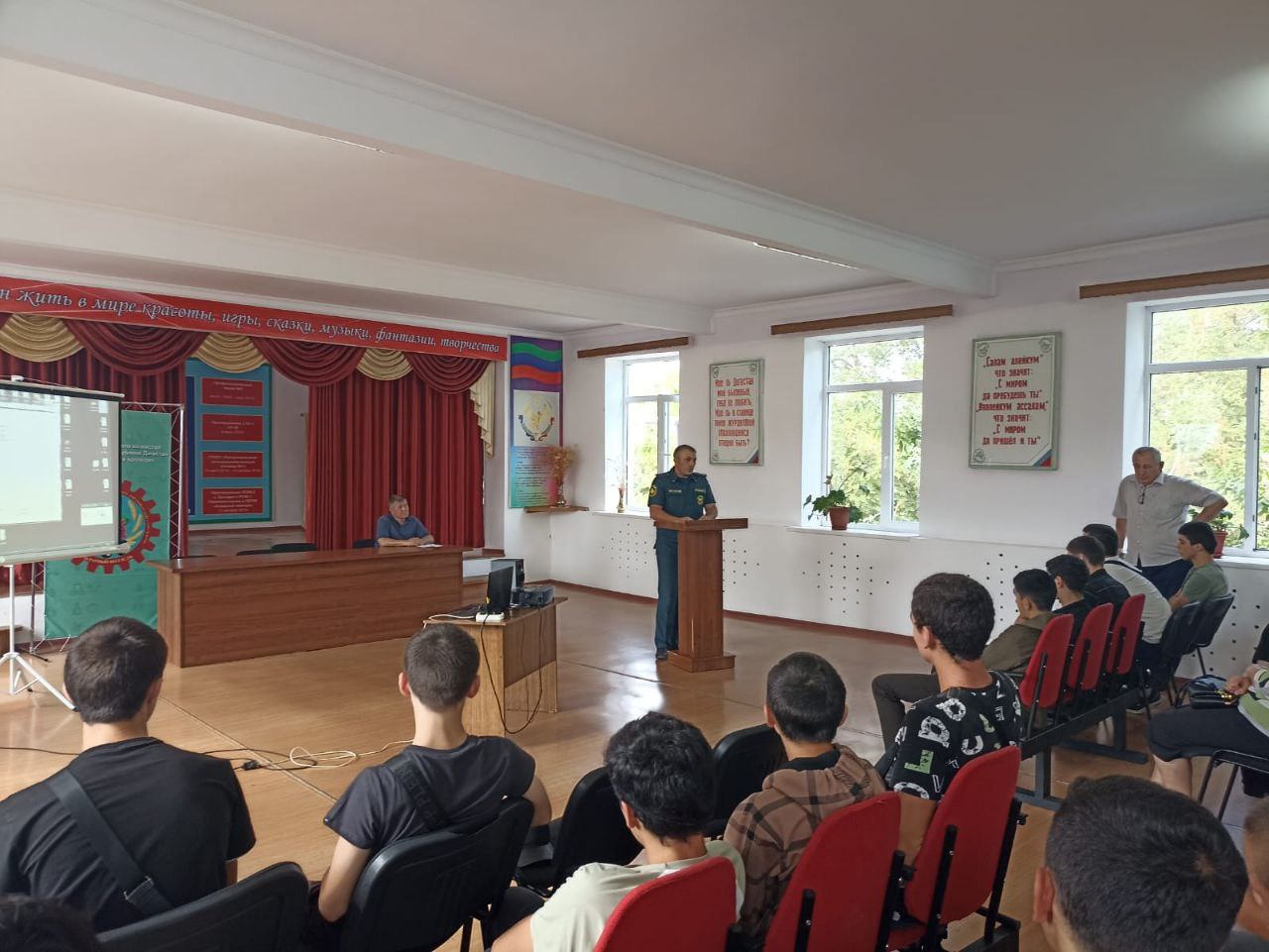 7 сентября 2023г. в ГБПОУ РД «Аграрный колледж» был проведен Всероссийский открытый урок по основам безопасности жизнедеятельности, приуроченный к началу учебного года, посвященного правилам безопасного поведения в повседневной жизни и действиям в условиях различного рода чрезвычайных ситуаций. Данный урок проведен в соответствии с письмом Главного управления МЧС России по РД и Минобрнауки РД. В мероприятии принял участие и выступил представитель ПСЧ-20 г. Дагестанские Огни Магомедов Руслан Абдуллаевич. В организации открытого урока приняли участие: преподаватель ОБЖ Пашаев С.З., преподаватель-организатор Агарзаева Э.Ф. , преподаватель по пожарной безопасности Загиров Н.К |