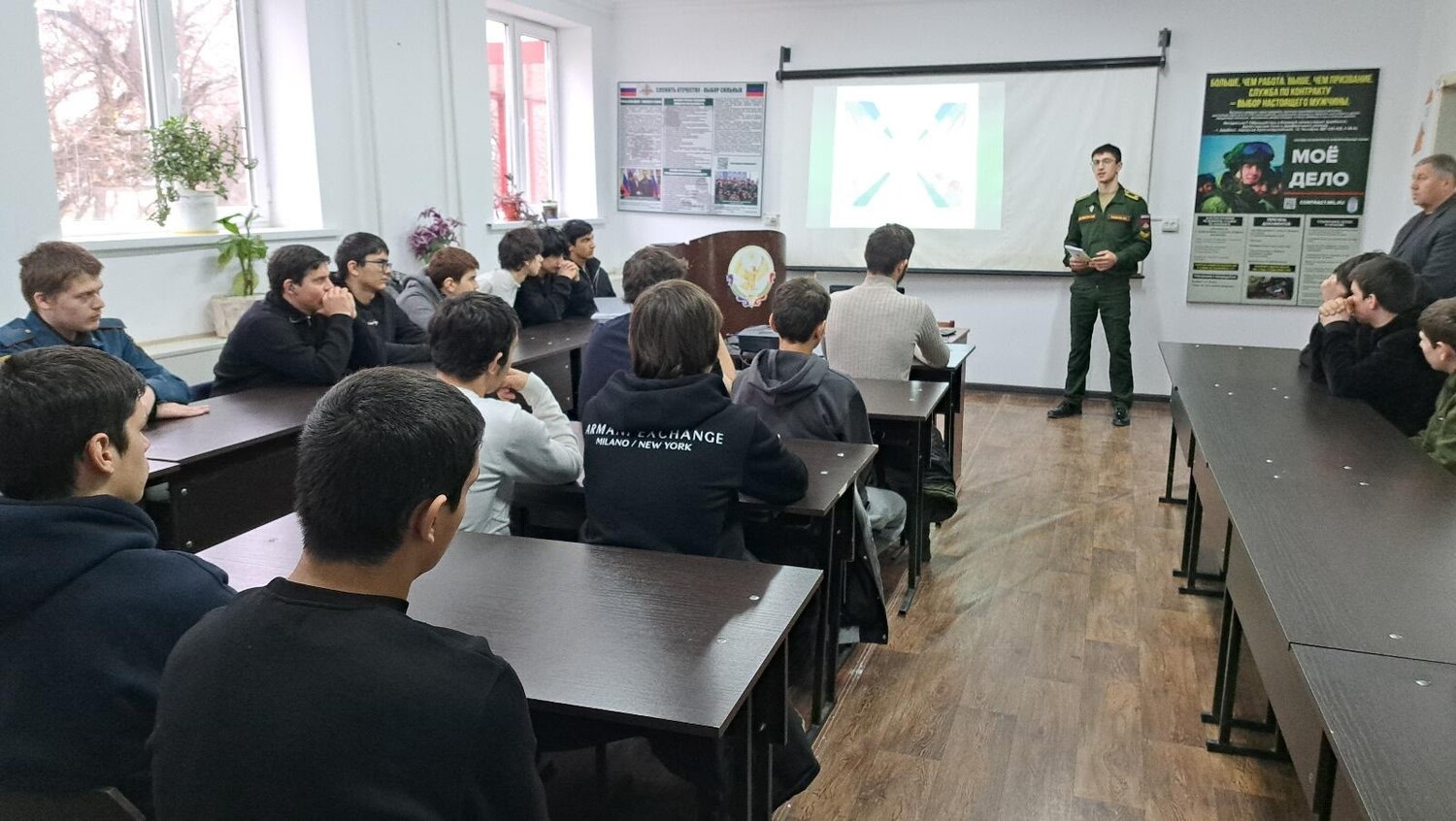 Конечно, не обошлось без практических советов! Магомед подробно рассказал о том, как поступить в их престижный военный вуз, и пригласил наших студентов после окончания колледжа рассмотреть для себя этот путь.