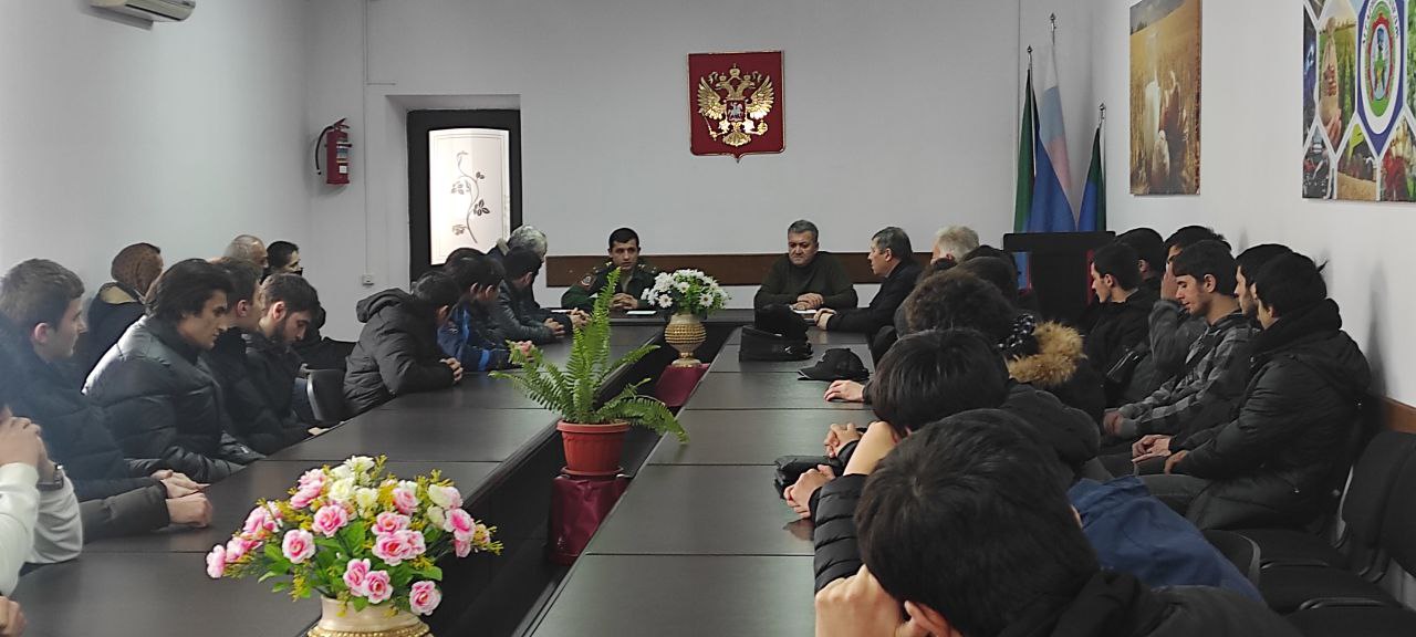 В канун праздника "Дня защитника Отечества " в конференц - зале прошла встреча обучающихся со старшим помощником начальника отделения по первоначальный постановке на воинский учёт лейтенантом Мехтиевым Казимом Абакаровичем. На мероприятии обсудили ряд вопросов в организации подготовки допризывной молодёжи и призывников. Кроме того,на встрече поговорили о выработке поведения законопослушного гражданина во время взаимодействия с военным комиссариатом.