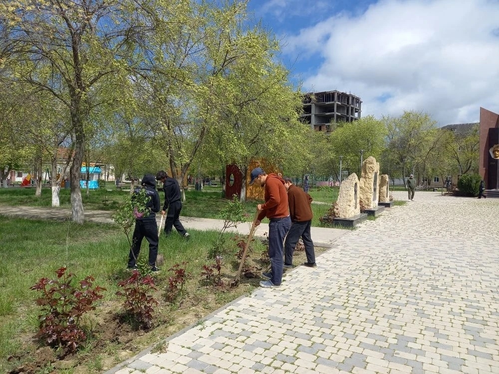 Студенты колледжа приняли участие в общероссийском субботнике, который прошел в сквере Воинской Славы города Дагестанские Огни.